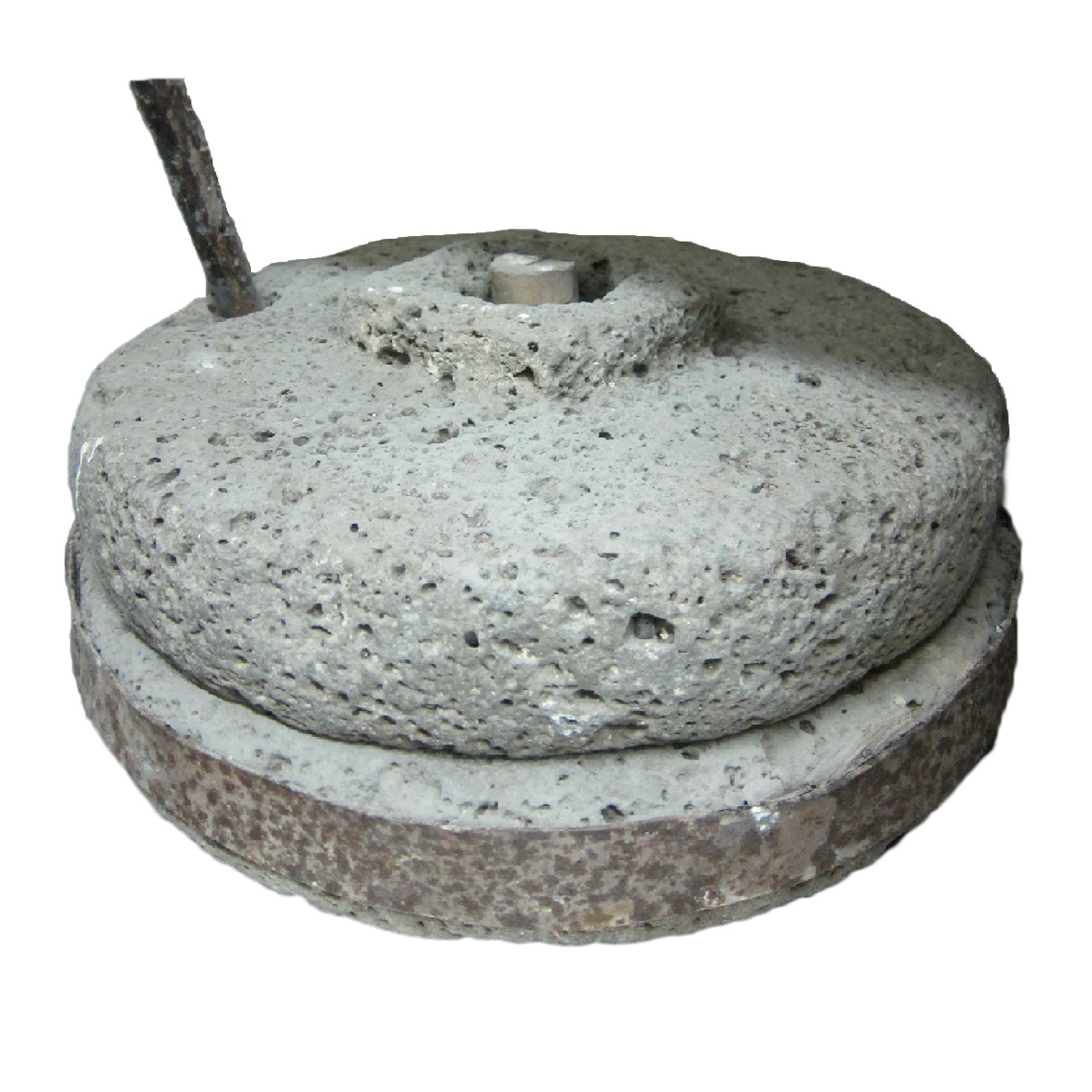 אבני רחיים לטחינת גרעינים. בזלת. התקופה הרומית-ביזנטית, עם תוספת מתכת מאוחרת.