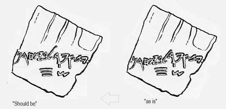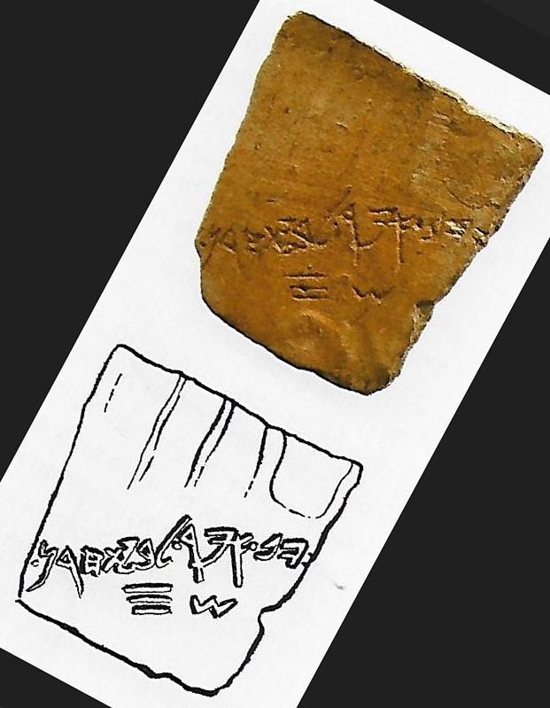 אוסטרקון חרס חרוט בעברית עתיקה, לאחר הצריפה, הנושא את הכתובת: “זהב אפר לבית חרן . ש3” (= זהב אופיר לבית חורון. ש(קלים) [3].