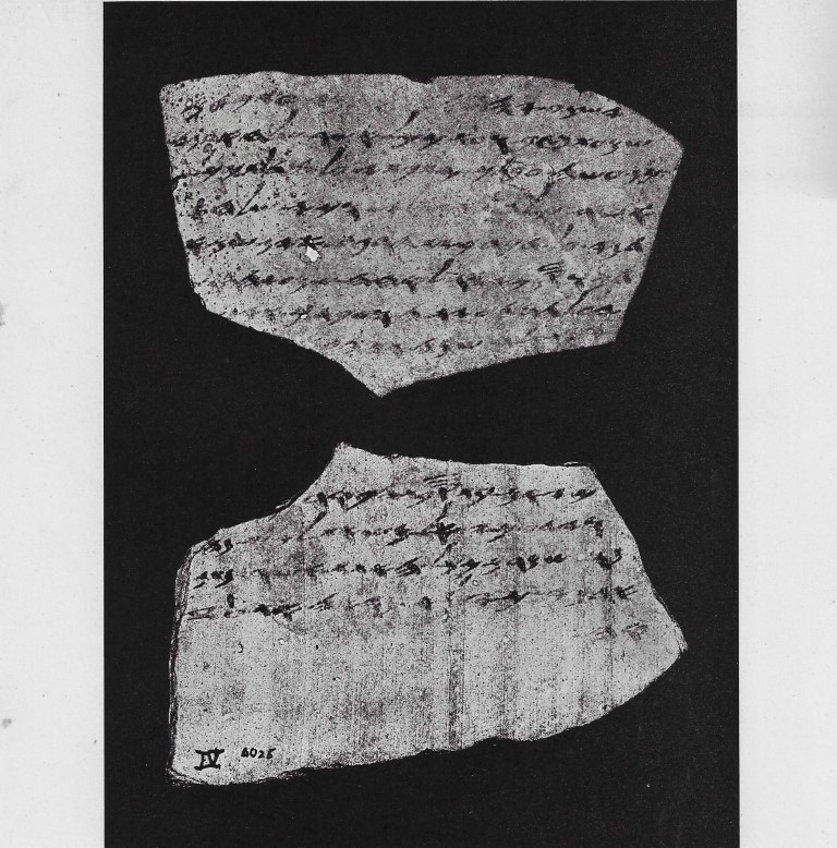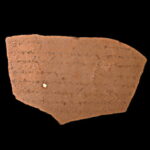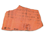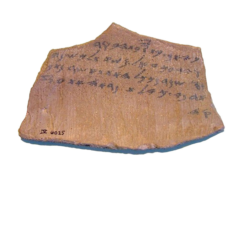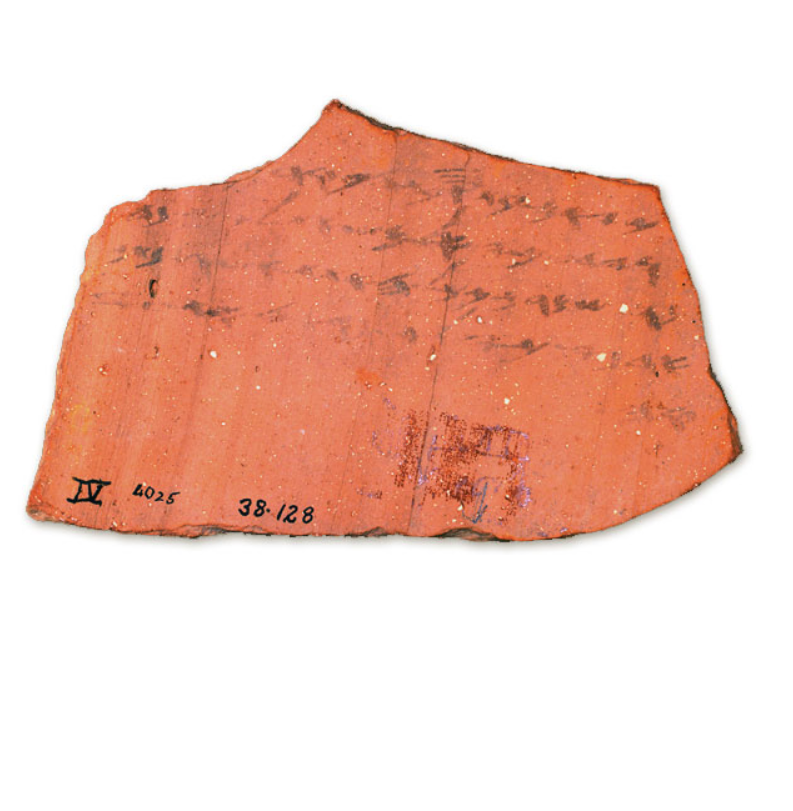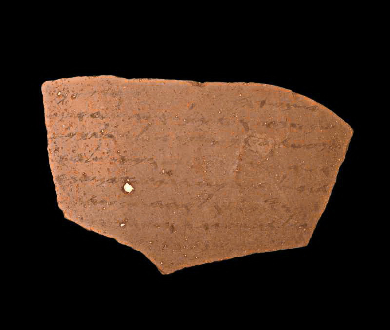 אוסטרקון חרס (Terracotta) רשום בדיו בעברית. תל לכיש. מכונה “אוסטרקון מספר 4 צד ב'” (“וידע אדני כי אל משאת לכש נחנו שמרם ככל האתת אשר נתן אדני. כי לא נראה את עזקה”). תל לכיש. תקופת הברזל (מאה 6 לפנה”ס)