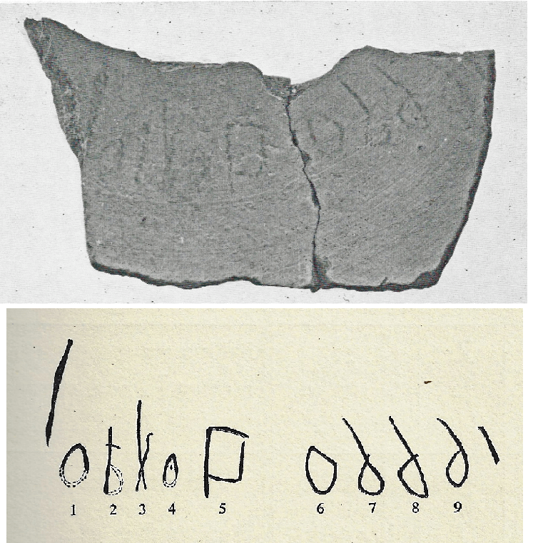 אוסטרקון (כתובת פרוטו-כנענית בדיו). מקדש החפיר. לכיש. תקופת הברונזה (Bronze) המאוחרת.