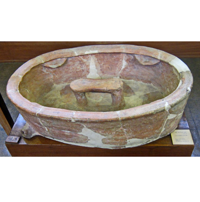 “אמבט” חרס (Terracotta) לרחיצת רגליים (או כלי (Vessel) בעל שימוש אחר לא ידוע). התגלה בקבר פיר בשומרון. תקופת הברזל 2