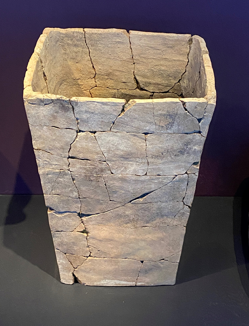 "ארגז" (ממגורה) לתבואה (גובה: 72 ס"מ) בו נמצאו גרעיני חיטה מפוחמים. תל רחוב. תקופת הברזל