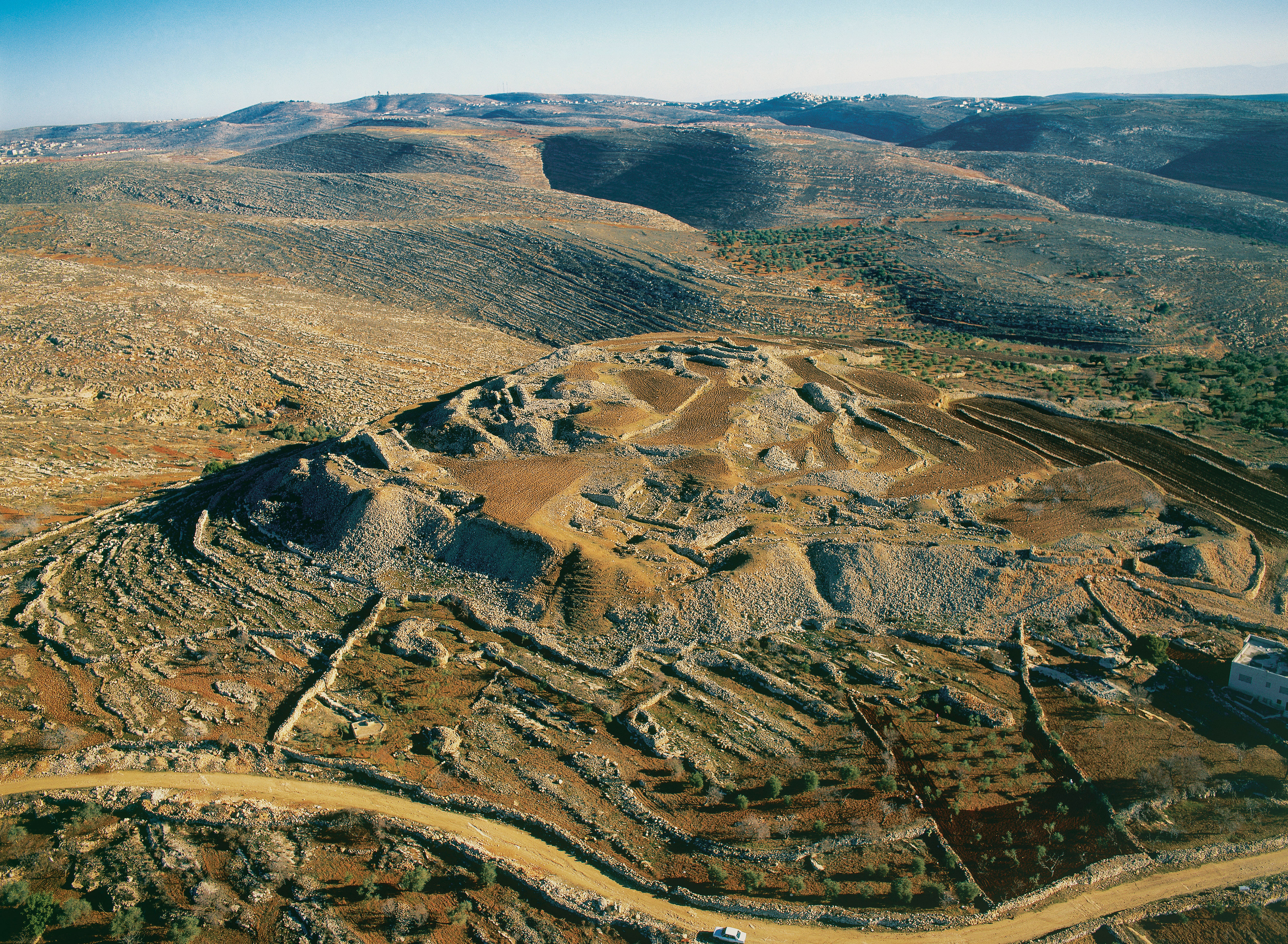 א-תל מצפון לירושלים. התל זוהה עם העי המקראית, אך נתגלו בו ממצאים מתקופת הברונזה הקדומה 1 ומתקופת הברזל בלבד, תקופות שאינן תואמות את זמן כיבוש הארץ על ידי יהושע