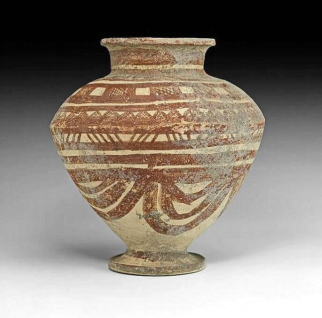 גביע מעוטר בדגם (Model) גיאומטרי, כנראה טיפוס צפוני (ייצור סורי-לבנוני), תקופת הברונזה (Bronze) התיכונה 2