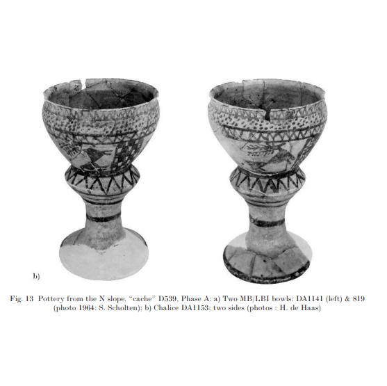 גביע מעוטר עם עיטור איילה, דיר אל עלא (עמק הירדן המזרחי). תקופת הברונזה המאוחרת