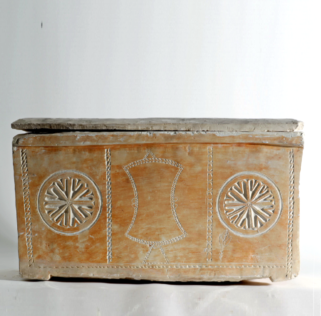 גלוסקמא, עם אלמנט שמציג ככל הנראה “נפש” (מצבה שהייתה מחוץ לקבר). המאה הראשונה לספירה.