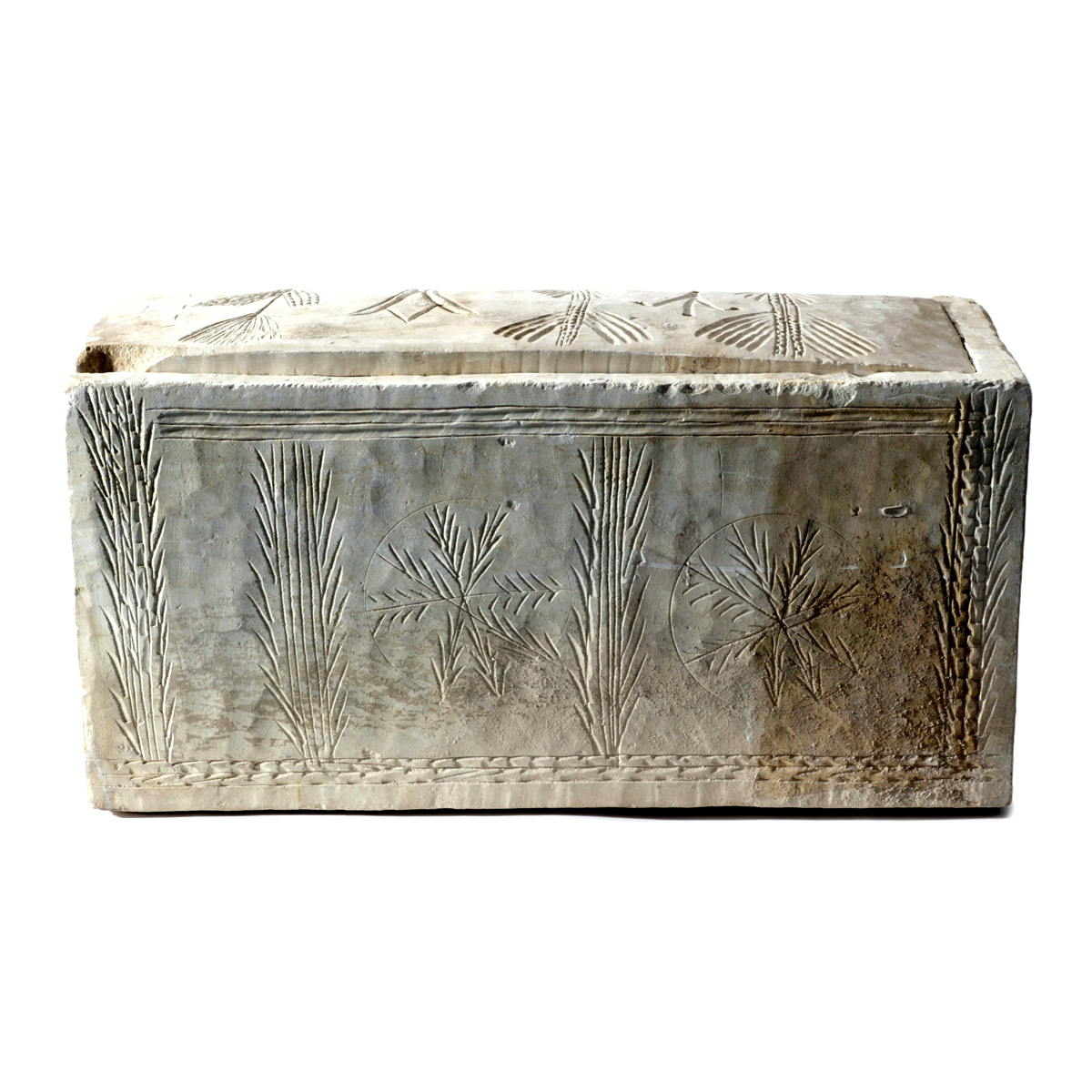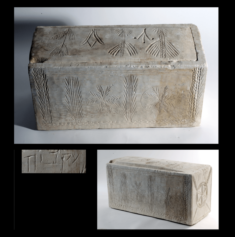 גלוסקמא עם הכתובת “עקביה”, עם עיטורי צמחים. המאה הראשונה לספירה