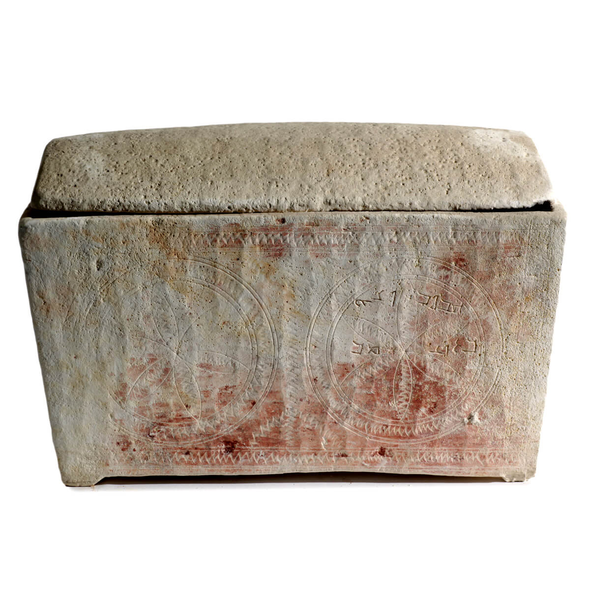 An inscribed ossuary, with a Tadmorite Aramaic inscription (an Aramaic dialect that developed in Tadmor-Palmyra in Syria). First century AD. Early Roman period