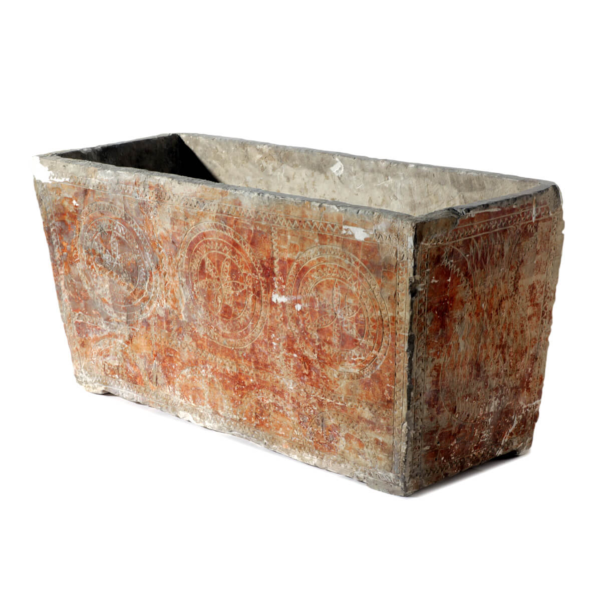 גלוסקמא מעוטרת בצידה באמפורה ובחזיתה ב-3 ורדות. המאה הראשונה לספירה (מתוקנת).
