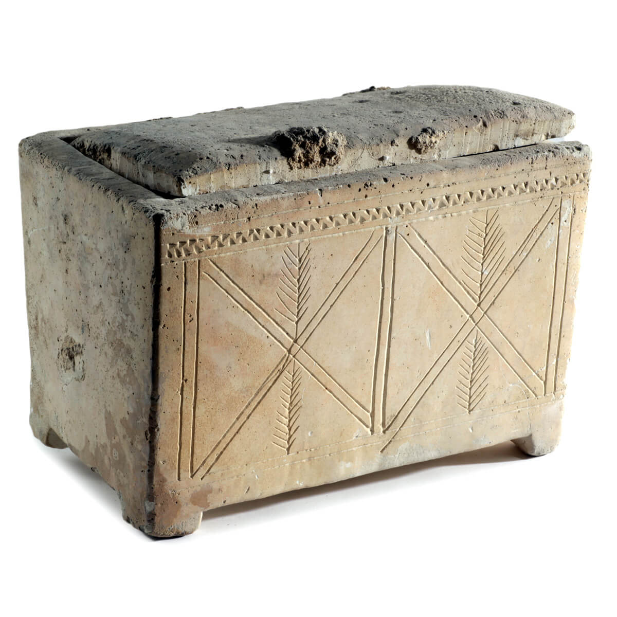 גלוסקמא קטנה יחסית (כנראה של ילד), עם עיטור גיאומטרי מרובע. המאה הראשונה לספירה