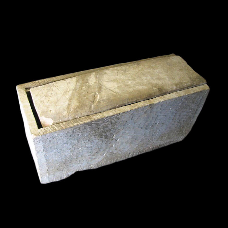 הגלוסקמא התגלת-ה במערה בעמק קדרון בחפירות פרופ' סוקניק בשנות הארבעים. אוסף האוניברסיטה העברית ירושלים
