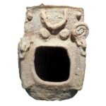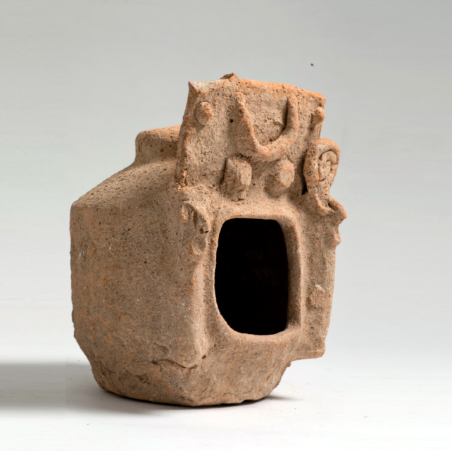דגם של מקדש, עם 2 ראשי אדם וסהר (ירח) בקרניז. עבר-הירדן (ככל הנראה מואבי). תקופת הברזל 2 (מאות 9-10 לפנה”ס)