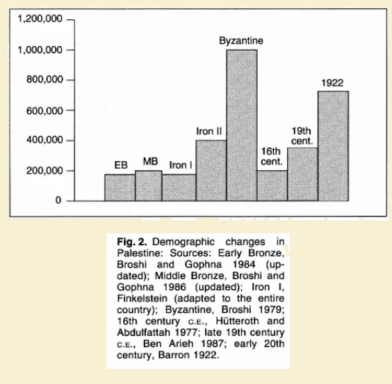 האוכלוסיה בארץ ישראל בתקופות השונות (מתוך מאמר של מגן ברושי)