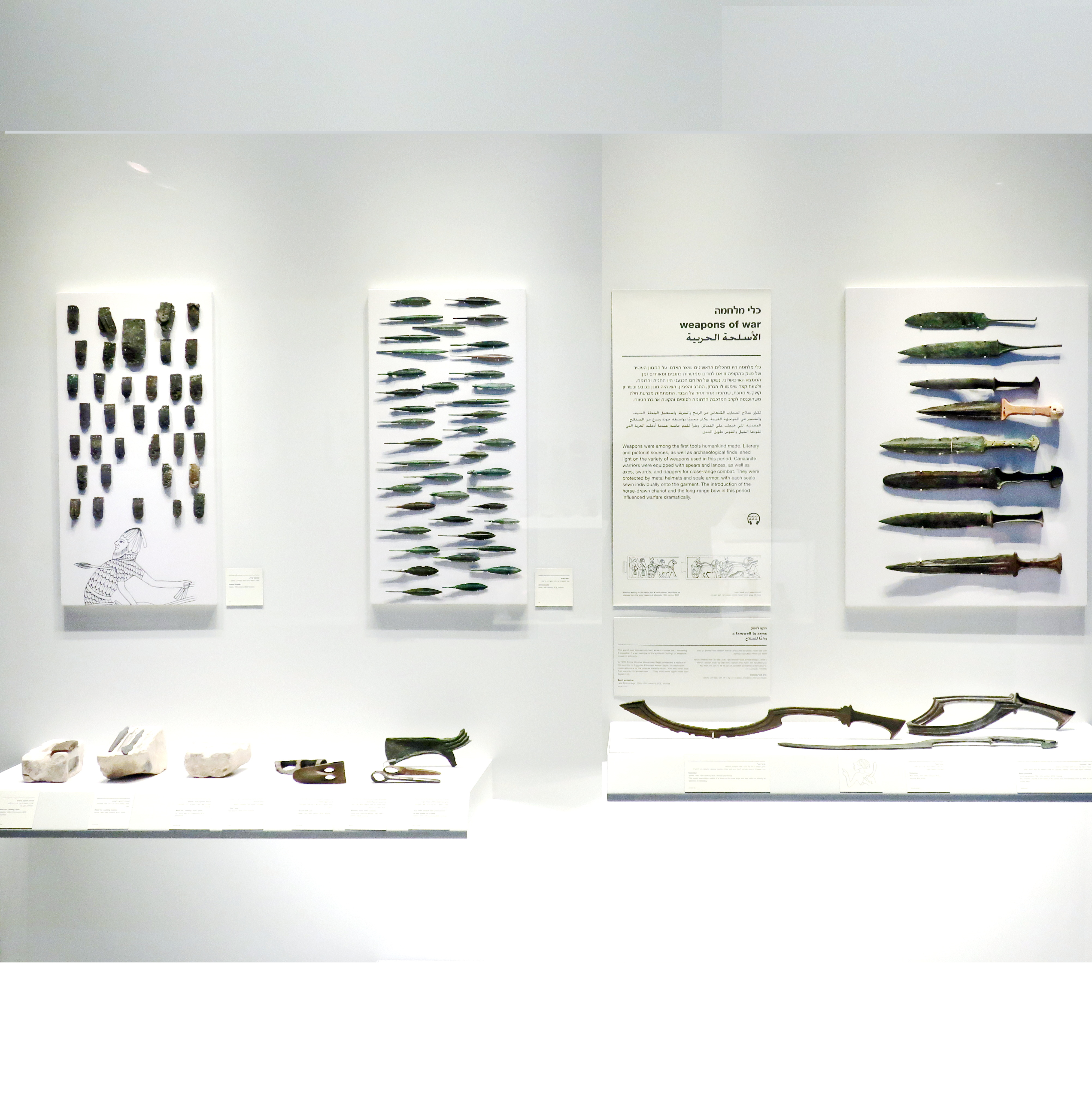 מוזיאון ישראל: ויטרינת כלי נשק. חרבות, פגיונות, חיצים וגרזנים. תקופת הברונזה המאוחרת