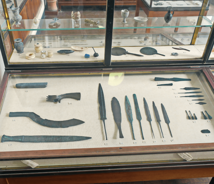 מוזיאון רוקפלר: ויטרינת כלי נשק מברונזה ומראות ברונזה. תקופת הברונזה המאוחרת