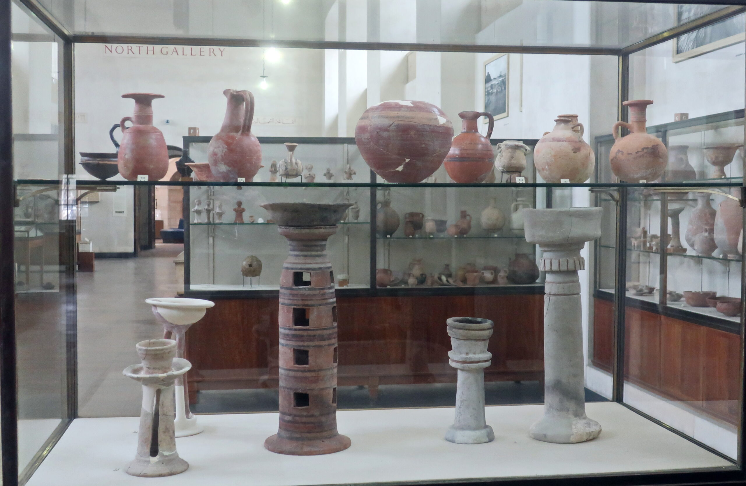 מוזיאון רוקפלר: ויטרינת מקטרים ממגידו וכלים פיניקיים בעיקר מאכזיב. תקופת הברזל 2