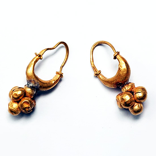 זוג עגילי זהב, המאה הראשונה, התקופה הרומית