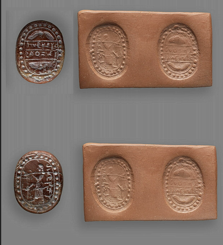 חותם אבן הרשום משני צידיו עם הכתובות בעברית "לשבניו" ו-"לשבניו עבד עזיו" (שבניהו עבד עוזיהו). תקופת הברזל 2 (מוזיאון הלובר, פריז).