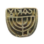 חותם לחם מברונזה (Bronze) עם מנורת שבעת הקנים ולולב עם כתובת ביוונית (יצחק?). התקופה הביזנטית