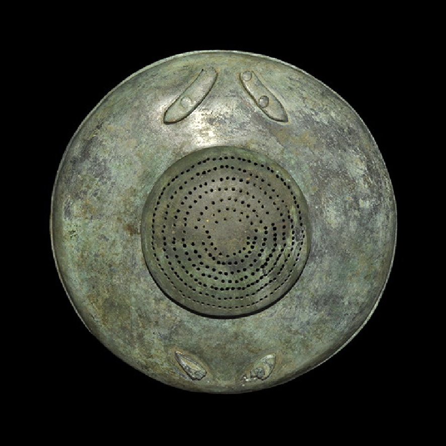 טס ברונזה מפואר, עם חורי סינון בבסיס, המאה הראשונה לספירה