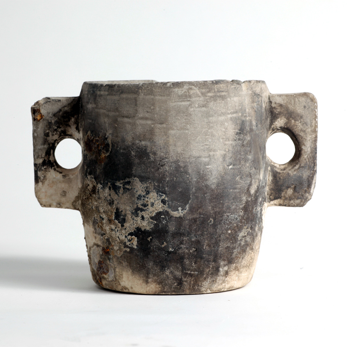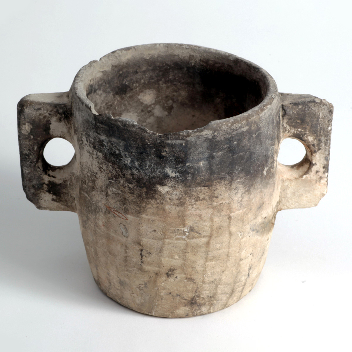 כוס (ספל) אבן עם 2 ידיות, עם סימני שריפת ירושלים, ירושלים, התקופה הרומית