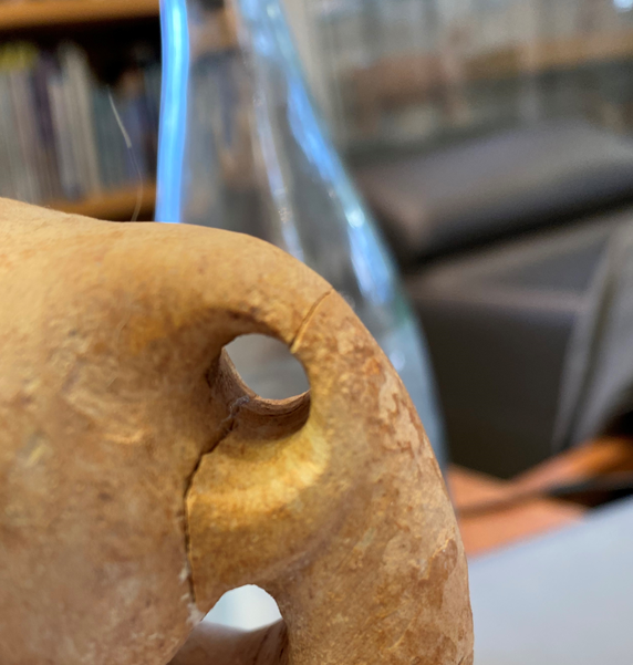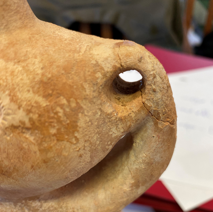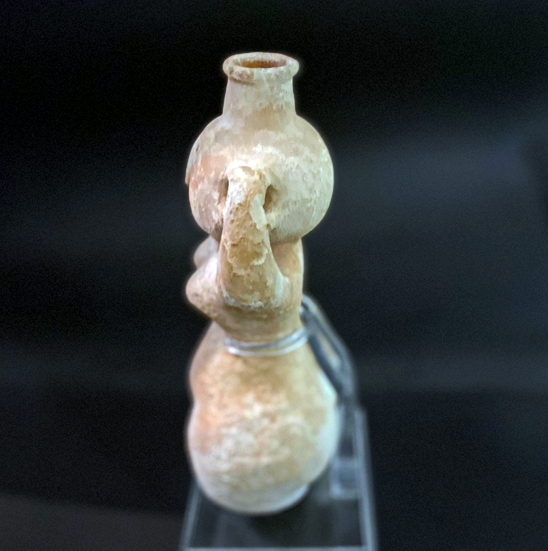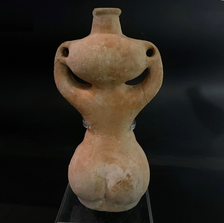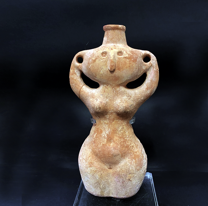 כלי אבן אנתרופומורפי של אשה הנושאת מחבצה. פני האשה מהווים חלק מהמחבצה. עיני האשה וכן אבר מינה מעוטרים. התקופה הכלקוליתית הכלקוליתית.