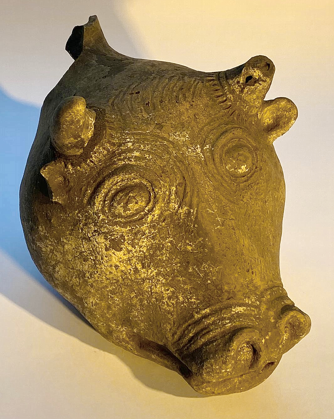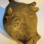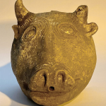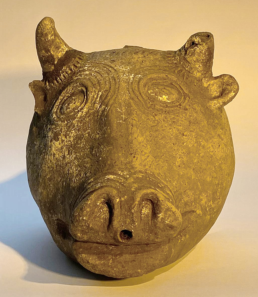 כלי זואומורפי בצורת ראש פר מחרס כהה. ככל הנראה מתקופת הברונזה התיכונה 2
