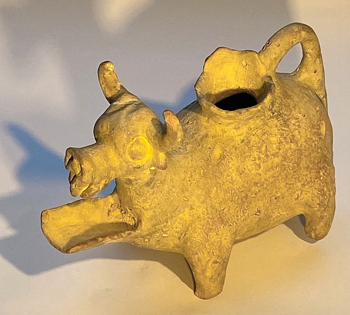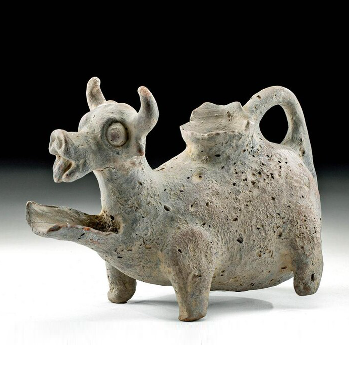 כלי זואומורפי, עם ראש פר וחדק סינון בחזית הכלי, כנראה מעבר הירדן, תקופת הברזל 2