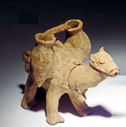 כלי מזיגה זואומורפי, בע"ח (כנראה גמל) נושא 2 כדים, לשעבר מאוסף מילדנברג, תקופת הברזל