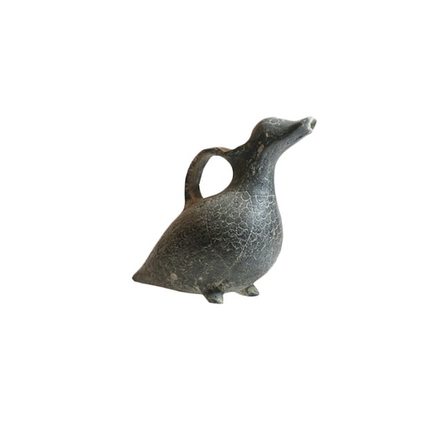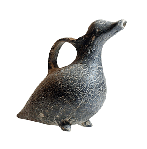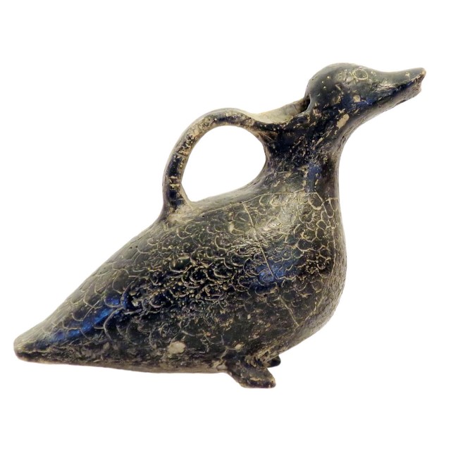 כלי מזיגה זואומורפי, בצורת ברווז או ציפור, עיטור בטכניקת תל-אל יהודיה, תקופת הברונזה התיכונה 2