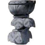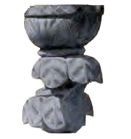 כלי פולחני (כן פולחני) ובו המוטיב של "כפתור ופרח". מתוך פרסום חפירות מגידו (שומאכר 1905-1903). המקור אבד. תקופת הברזל 2