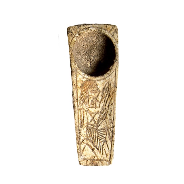 כלי קוסמטיקה עם עיטור אדם כורע בתנוחת תפילה. תקופת הברונזה (Bronze) המאוחרת