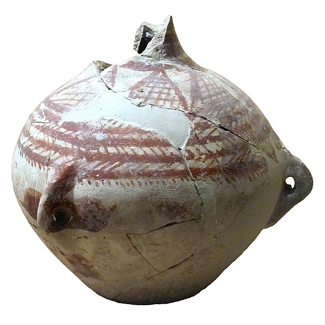 כלי “קרם” מעוטר, תל גזר, התקופה הכלקוליתית (המוזיאון הארכיאולוגי באיסטנבול)