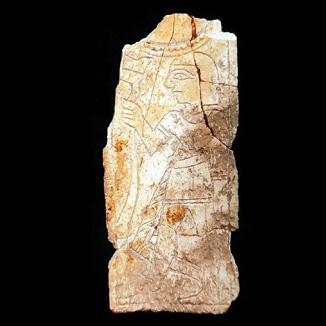 כלי תמרוקים (קוסמטיקה) משנהב, עם דמות כנענית מחזיקה בגרזן, תקופת הברזל 1 (או שלהי תקופת הברונזה המאוחרת)