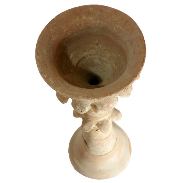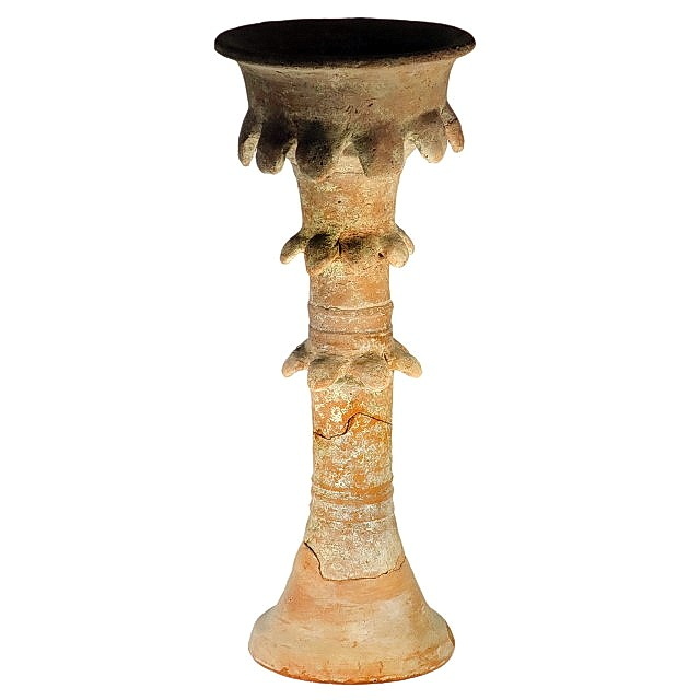 כן פולחני גבוה, עם קערת עלים ו-2 שורות “עלים” בקנה. תקופת הברזל 1