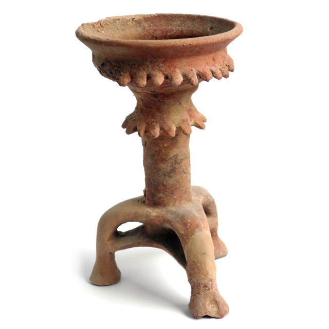 כן פולחני, עם קערת "עלים" ו-3 רגלים (חיקוי לכלי מתכת), תקופת הברזל 1