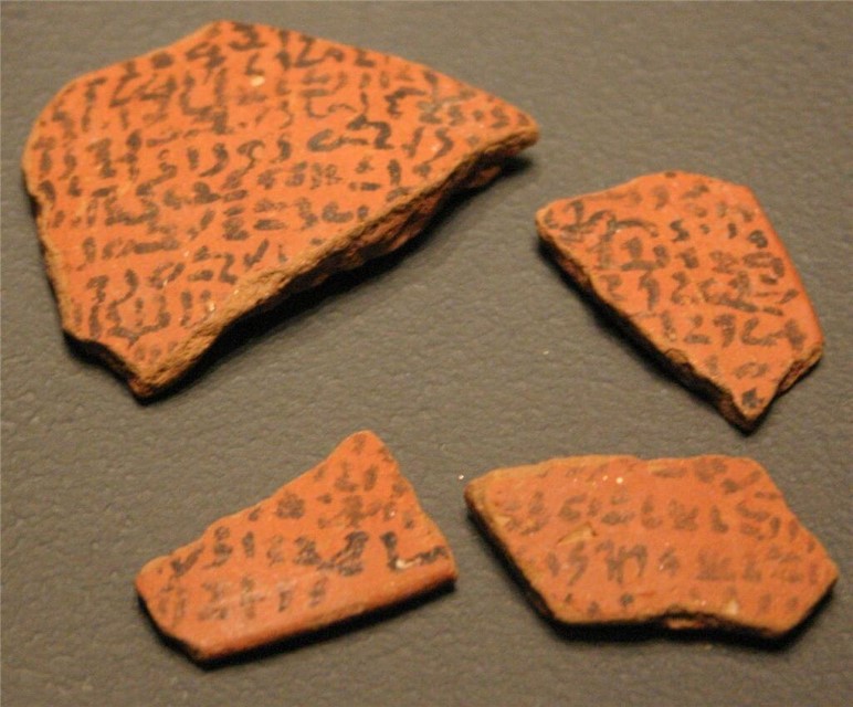 "כתבי המארות": צלמיות עם כתבי מארות (קללות), חלקן מזכירות שמות ישובים בכנען, ממצרים. תקופת הברונזה התיכונה 2ב.