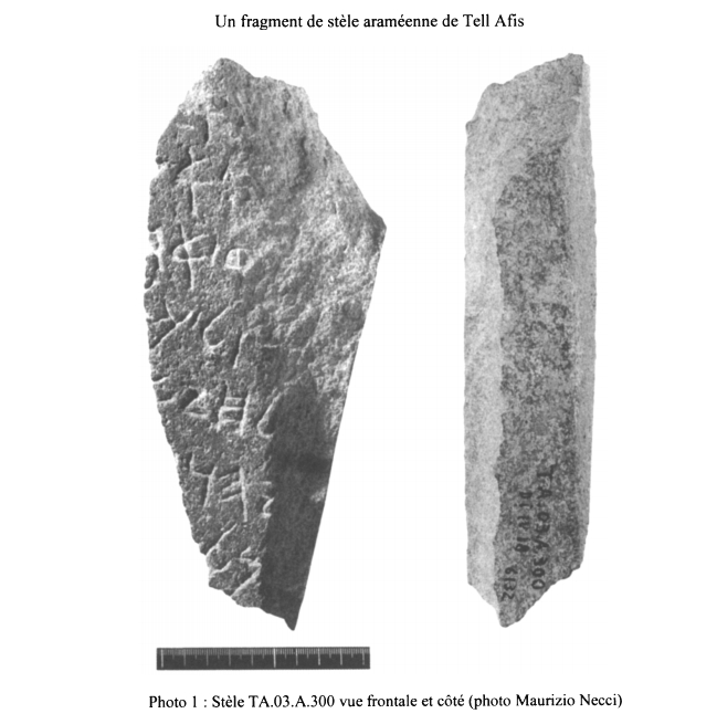 כתובת ארמית חקוקה באבן (Stone) בכתב העברי הקדום מתל אפיס tell Afis 50 ק"מ דרומית-מזרחית לחלב Aleppo., כ-11 ק"מ צפונית לאבלה. תקופת הברזל 2