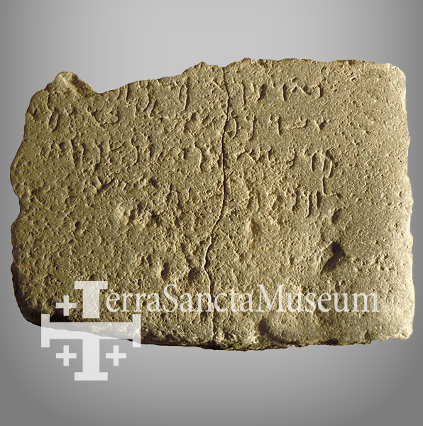 כתובת בעברית קדומה (?) חרוטה על אבן גיר. מוזיאון טרה-סנטה (המוזיאון הפרנציסקני בעיר העתיקה בירושלים). תקופת הברזל (?)