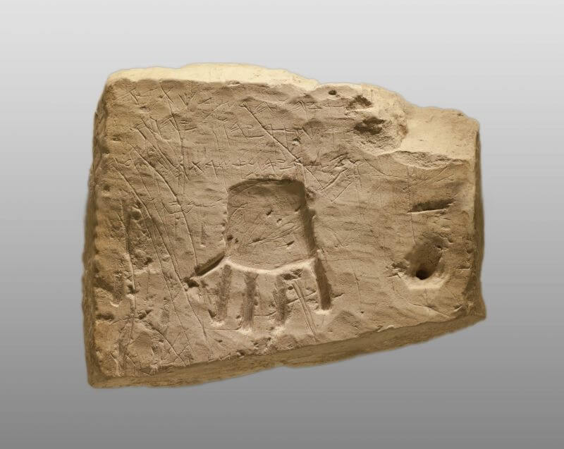 כתובת עברית ממערת קבורה מחרבת-קום (מקדה הקדומה, בכפר דיר סאמט, הר חברון), עם עיטור יד שקועה, תקופת הברזל 2