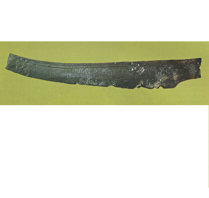 להב סכין, עליה כתובת באלפבית האוגריתי. נחל תבור. תקופת הברונזה המאוחרת