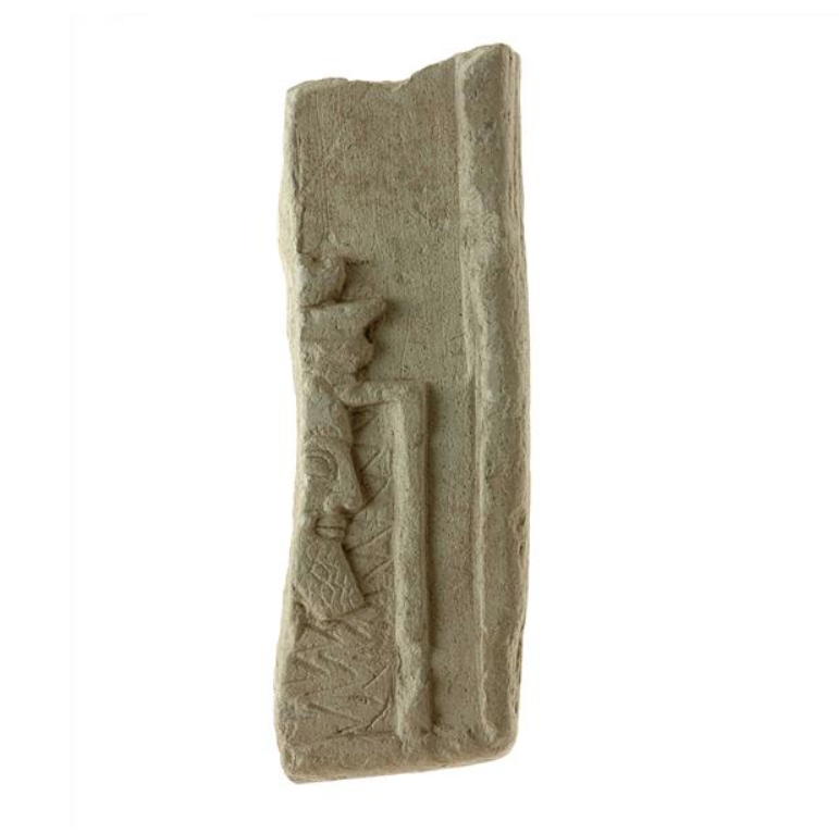 לוחית אבן, עם תבליט ראש גבר מזוקן, תל צפית, התקופה הפרסית (או תקופת הברזל המאוחרת)
