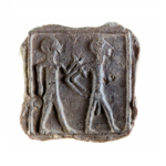 לוחית חרס (Terracotta) הכוללת טביעה (בתבנית) בה מתוארים שובה (לבוש) ושבוי (עירום). תל ג’מה (ליד קיבוץ רעים). התגלה על ידי ילד בן 6 ב-2020. תקופת הברונזה (Bronze) המאוחרת