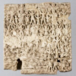 לוחית שנהב, בסגנון חיתי, עם סצינה של מפגש בין 2 מלכים (בשורה העליונה). המלכים נישאים על שורות של האלים החיתיים שדמותם דמות של חיות. מעל ראש המלכים מוטיב השמש המכונפת. הלוחית (Slab) הינה חלק ממטמון שנהבי מגידו (380 יחידות בסה”כ). תקופת הברונזה (Bronze) המאוחרת