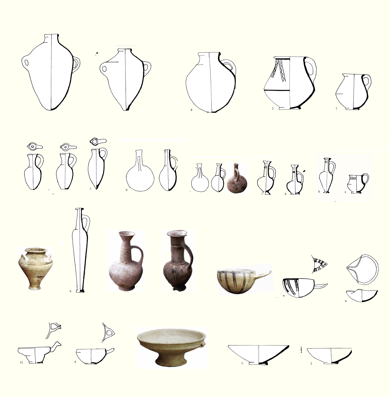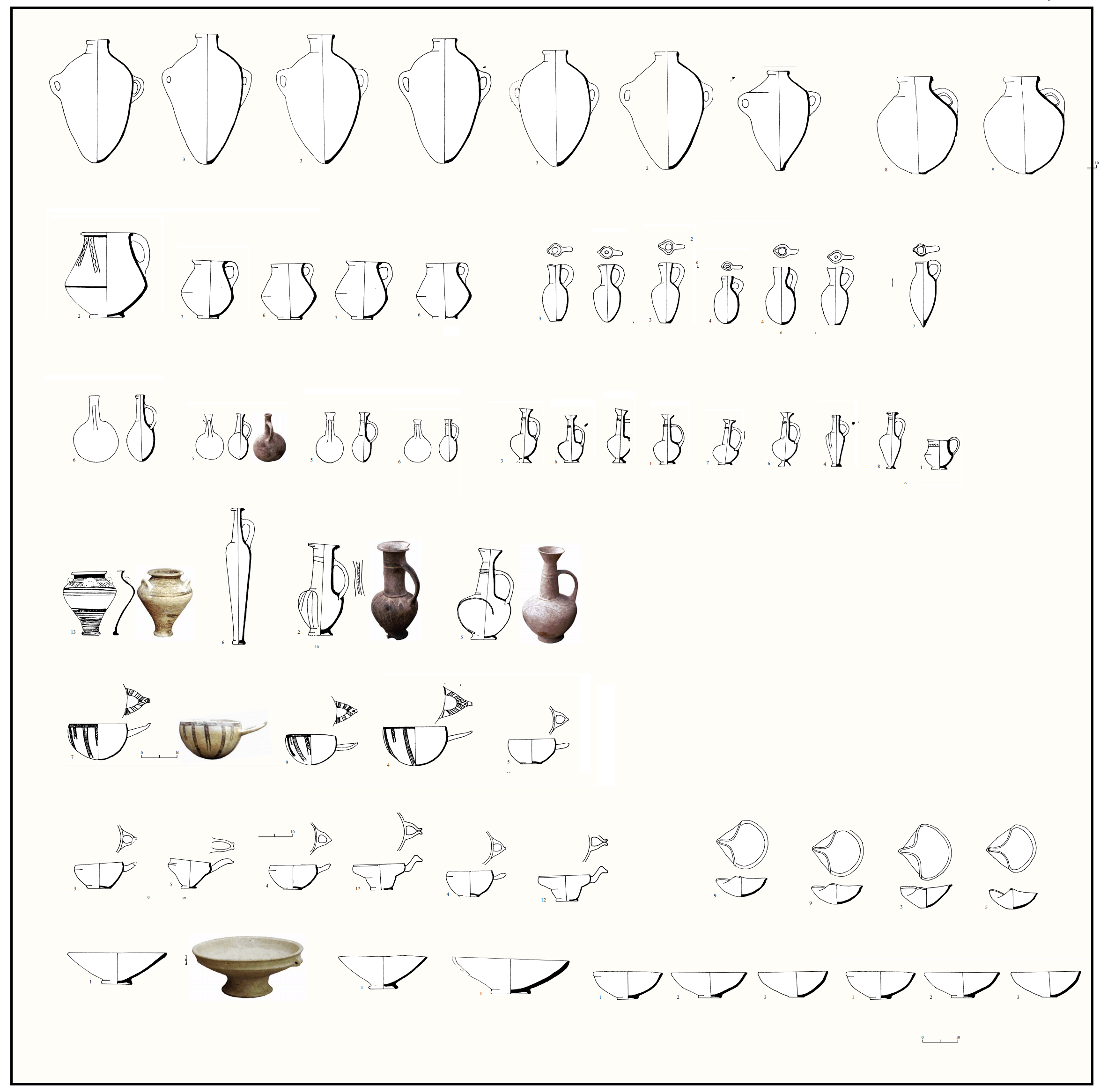 מגוון כלי החרס שהתגלה ב-23 קברים חפורים ומדופנים בחוף פלמחים, ובהם קנקנים, פכים ופכיות, צפחות, כלי ארכובה (מיקני, יבוא מיוון), "בקבוק סורי" (פך מאורך), "קערות חלב" (יובאו מקפריסין), פכי "בילביל" (יובאו מקפריסין), קערות ונרות שמן. תקופת הברונזה המאוחרת