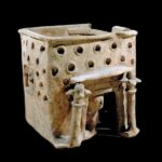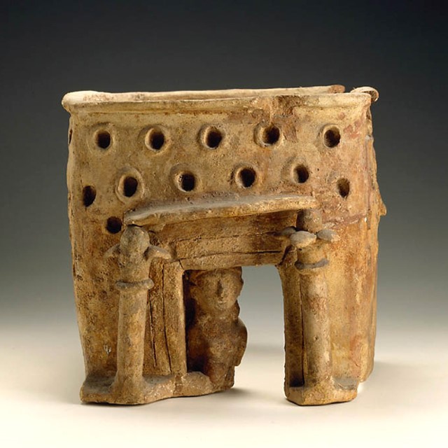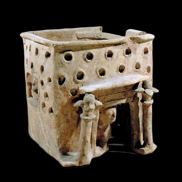 מודל בניין, כנראה מקדש, עם דמות בשער. קפריסין. תקופת הברזל