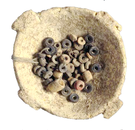חרוזים דומים נמצאו באתר עין ציפורי והם תוארכו לפי ממצאים אחרים לתקופה הכלקוליתית הקדומה (ראה בצילום השני)