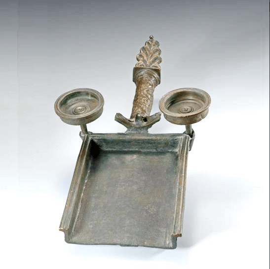 הערה: לכלי מאפיינים של חפצי ברונזה רומיים יוקרתיים מאמצע המאה הראשונה לספירה (קדם-פומפיי). אפשר אולי שכל המכלול קדום לימי בר כוכבא.