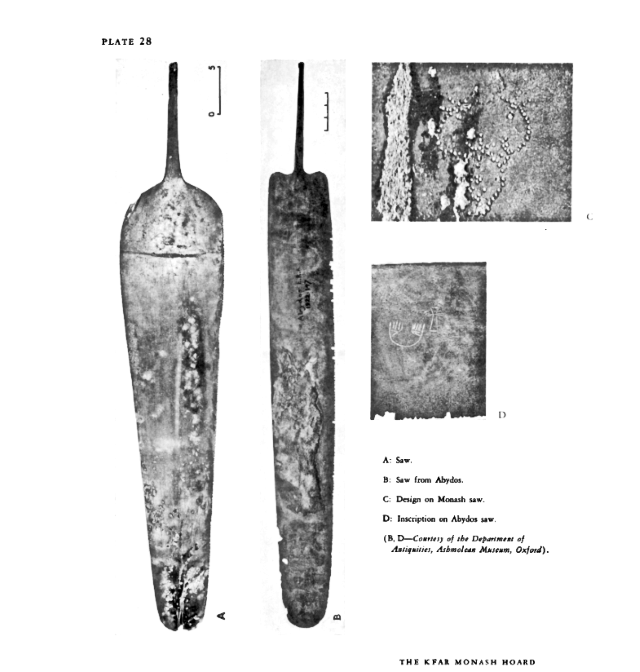 מרבית כלי העבודה (כילפות, משור, איזמלים וסכינים) נוצקו ככל הנראה במצרים. שם (ורק שם) התגלו כלי עבודה דומים (לדוגמא: כלים שנתגלו בקבר הענק 3471 בסאקרה, מדרום לקאהיר, מתקופת שושלת "אפס"/השושלת הראשונה, שפריטי הנחושת שנתגלו בו מתוארכים לימי המלך המצרי Djer, או משורי עץ מנחושת שהתגלו באבידוס במצרים העליונה).