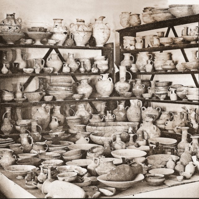 ממצאים ממערת קבורה למרגלות הר עיבל, כ-500 מ' מתל-בלטה (שכם הקדומה).  בקבר התגלו למעלה מ-2000 כלים מכל תקופת הברונזה המאוחרת, מרביתם תוצרת הארץ והאחרים כלים שיובאו מקפריסין, מיוון (כלים מיקניים) וממצרים (כלי אלבסטר ופאיינס). אולם המערה בגודל 9.5X6 מ' שימש לקבורה גם בתקופות קדומות יותר (מהתקופה הכלקוליתית התגלו גלוסקמאות במערה). ראוי לציין כי למרות שבמערה נתגלה עושר גדול בצורה יוצאת דופן של כלים מרצף השנים 1600-1300 לפנה"ס (משלהי תקופת הברונזה התיכונה ועד לסוף תקופת הברונזה המאוחרת ברצף מלא) הרי שבחפירות תל בלאטה הסמוך (שכם המקראית) לא נמצאו שרידי בנייה כלשהם או שרידי ישוב אחר מהשנים 1540-1450 לפנה"ס ! (קדמוניות 53-54)